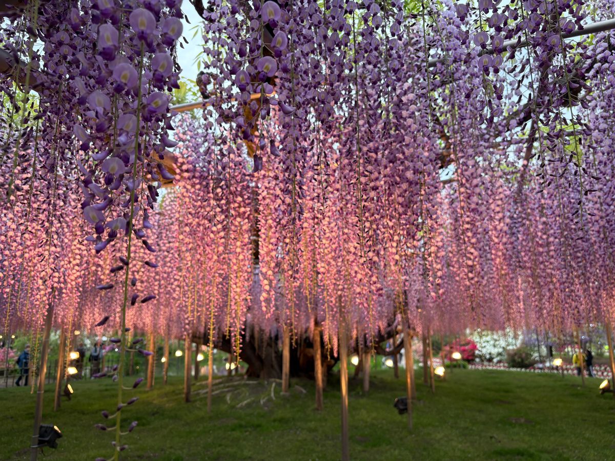 あしかがフラワーパークでは、藤の花の綺麗さとお花のいい匂いに癒されました。お天気がよかったため暗くなるのが遅く、ライトアップを見る前に出発となりました。