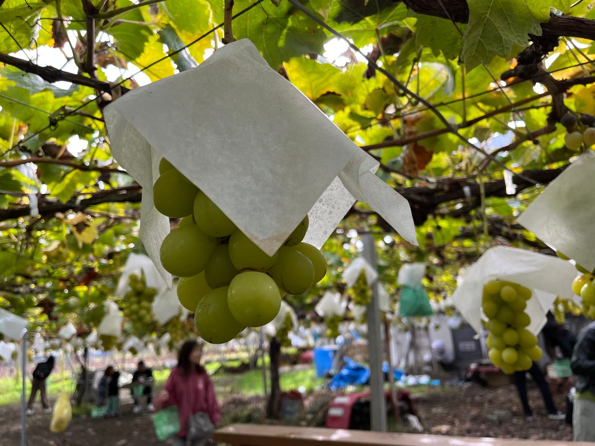新宿発着のブドウ狩りツアー。かなり人気のツアーらしく、連日たくさんの人が参加されているそうで、当日も多くの人と一緒に。前日まで続いた雨のせいで畑には入れず、従業員さんがすでに摘んでおいてくれたブドウをカゴから取り、好きなだけ食べるという仕様に。少し残念ではありましたが非常に効率よく食べまくれたのはよかったかも。。
