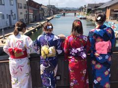 和装体験 昭和の雰囲気漂う内川を着物で散策 川の駅新湊のカフェでスイーツを堪能!<最大4名/2時間~>