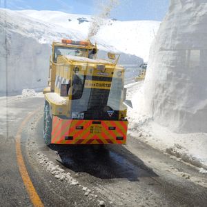 お蔭で道路に積もった新雪の除雪に立山熊太郎が出動していました。