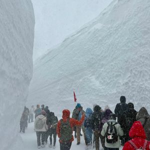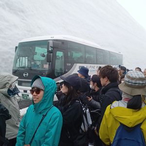 ナベさんのお話沢山聞けて、楽しかったです。旅は、天候有り気かな。雪の大谷歩けただけでも感謝。遠くから来てくださった外国の方達楽しんでもらえたでしょうか?ターミナル外はホワイトアウト状態。少し周りを歩きましたが、何も見えずターミナルに戻るのもドキドキ。遭難が頭をよぎる。無事戻れたので良かったですが反省。次回は晴天の雪の大谷を。翌日は環水公園、雨晴海岸から立山連峰を見ると、山頂まで見えました。1日違いで大違い。笑。貴重な体験有難うございました。