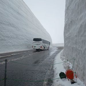アルペンルートは本来、ケーブルやバスなどの乗り継ぎが必要ですが、バスツアーなら室堂まで一気通貫に行けるのがいいですね。小雨まじりの曇り空のもと、富山駅を出発。称名滝、弥陀ヶ原、室堂平の標高差のある3カ所を巡るため、バラエティに富んだ内容でした。標高が上がって雲の上に出ると、ガスっていた視界が開け、バスの中で拍手喝采がおきました。弥陀ヶ原での散策時間が短かったのが残念でしたが、室堂では十分に散策できました!富山駅帰着まで、ツアーガイドさんのトリビア満載で、ホスピタリティを感じられるツアーでした。