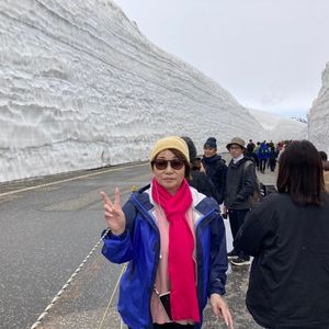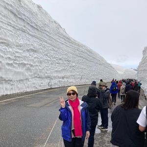 こんなにいいお天気で、立山連峰がくっきり見える事、珍しいですよ、と添乗員さんが言っていた通り、新緑の山々の間を抜ける葛折りの道、あっという間に2500mを登り雪の室堂に到着。本当に青い空と白い雪、風もなくダウンコートもいらない、でも涼しい心地よい空気。見えたらラッキーな石川県の白山もくっきり。雪の壁は12mくらいだったけど見上げた空の青さとのコントラストが素晴らしい。そしてこんなにいいお天気では、会えないかもしれないけど、会えたらすごい!と言われた雷鳥にも会う事ができて、しかもすぐそばまで来て撮影オッケーとばかりにポーズを決めてくれました。こんなにラッキーな日は何年に一度なのかも。でも、あまりに日光が強くてサングラスなしでは無理、そしてやはりスノーシューズがあると楽。溶けかけた雪も、積もった雪も滑るし、登り下りもあるので慣れないと歩けない人も。ナチュラリストさんの解説も添乗員さんのお喋りも、楽しくとても良い思い出に残るツアーでした。お世話になりました。