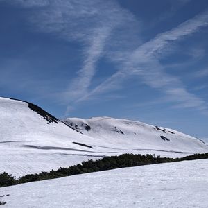 当日は好天に恵まれ、新緑の山から雪山へ。