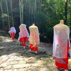 平安装束と熊野古道、熊野那智大社よく合いますね。
