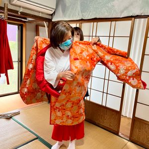 予約時に2時間のプランと迷いましたが、夫婦杉から那智大社、那智の滝までぐるっと回って3時間でぴったりでした!というのも、他の観光客の方々に写真撮っても良いか、一緒に撮りたいとお声を掛け続けられ、その対応に追われます。草履で3時間も歩けるのか不安もありましたが、結局休み休みになるので、痛くなることもなく、全然余裕でした!夫婦での参拝でしたが、たくさんの衣装の中から、おそろいの柄を発見!し、さりげないおそろコーデができたことも、良い思い出になりました。お店の方も親切で感じが良かったです。