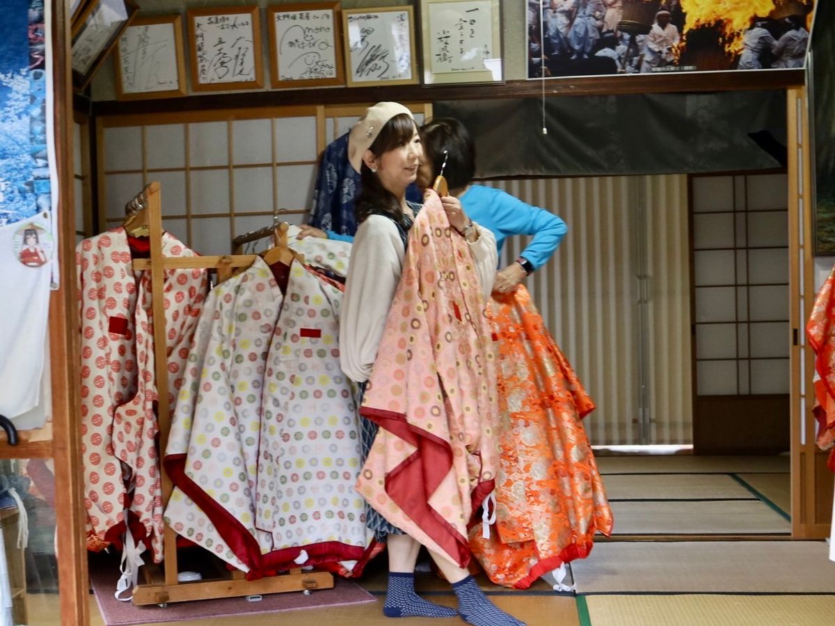予約時に2時間のプランと迷いましたが、夫婦杉から那智大社、那智の滝までぐるっと回って3時間でぴったりでした!というのも、他の観光客の方々に写真撮っても良いか、一緒に撮りたいとお声を掛け続けられ、その対応に追われます。草履で3時間も歩けるのか不安もありましたが、結局休み休みになるので、痛くなることもなく、全然余裕でした!夫婦での参拝でしたが、たくさんの衣装の中から、おそろいの柄を発見!し、さりげないおそろコーデができたことも、良い思い出になりました。お店の方も親切で感じが良かったです。
