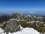 前日に雪のため通行止だった道路が紀元杉まで解除され、約30分早めの登山開始となりました。前日の縄文杉トレッキングの疲れが脚に残りパーティのみなさんに迷惑がかからないか不安な気持ちでいっぱいでした。 雪山初心者の私でしたが、ガイドさんとパーティのみなさんからの優しい声とアドバイスのおかげでなんとか付いて行けました?どちらかとか連れてっていただけました。 山頂から見た景色は、今までに見た