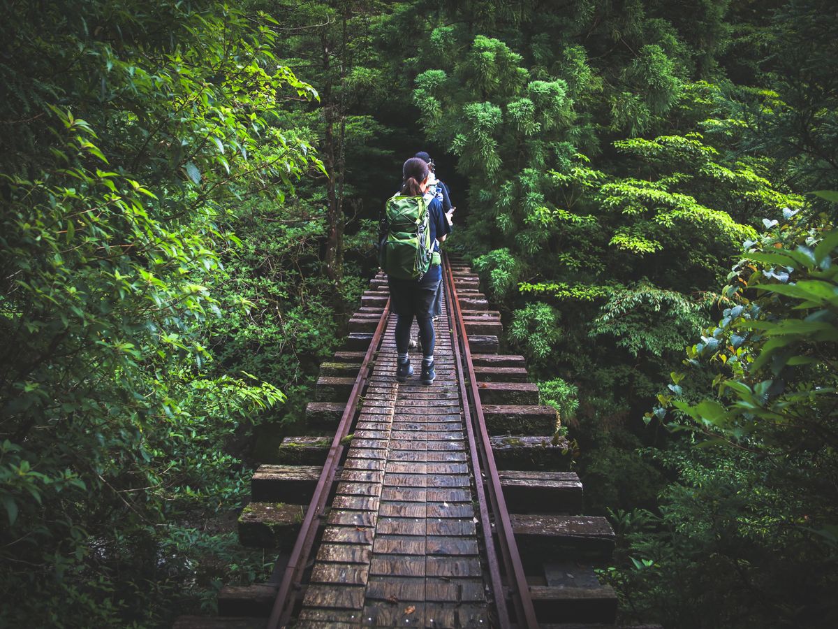 標高が高いところからのスタートで、片道11kmのうち8kmまではトロッコ列車の歩道を歩き、ほとんどが木陰の下だったので比較的暑さは苦ではありませんでした。