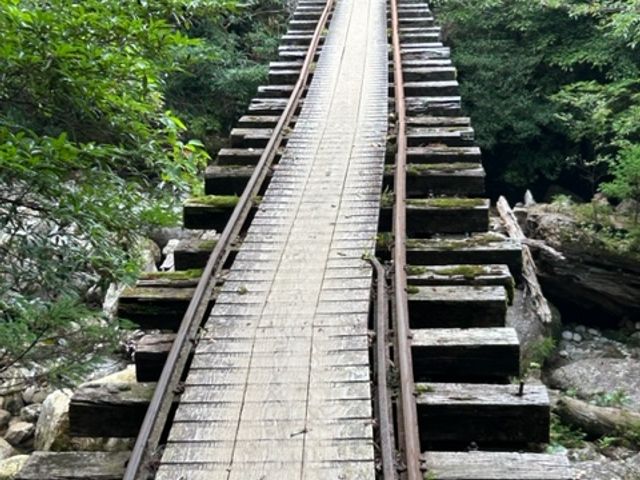 トロッコ道は傾斜も緩く普段運動ジムに行ってたこともあり大丈夫でしたが、後半は傾斜が一気に増えて、さらに湿度も高く滑る部分が多く大変でした。