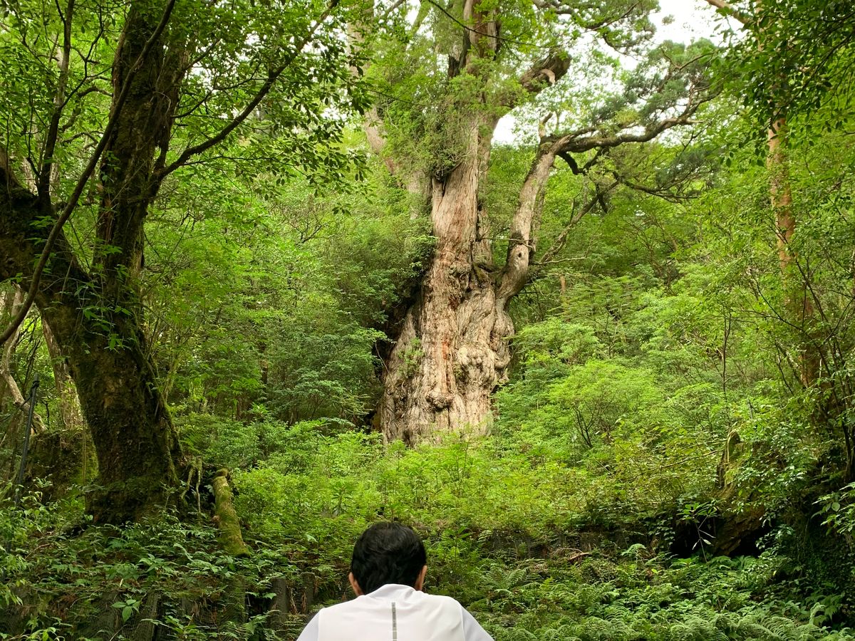 11歳の息子と縄文杉コースに参加しました。降水確率100%でガイドの大沢さんも躊躇するような雨でした。トロッコ道開始5分でびしょ濡れになり、iPhoneも帰り路で水没しました。折りたたみ傘と携帯電話カバーは必須です。それでも森の緑の深さは素晴らしく、大雨の中で燃えるような縄文杉の気高さに胸を打たれました。往復9時間を歩き切り、息子も一回り大きくなりました。昼ごはんのタープの雨除けと温かい味噌汁も素晴らしく、森の奥まで連れて行ってくれた大沢さんに心から感謝いたします。このような素晴らしい景色を次の世代に伝えていきたいと思いました。