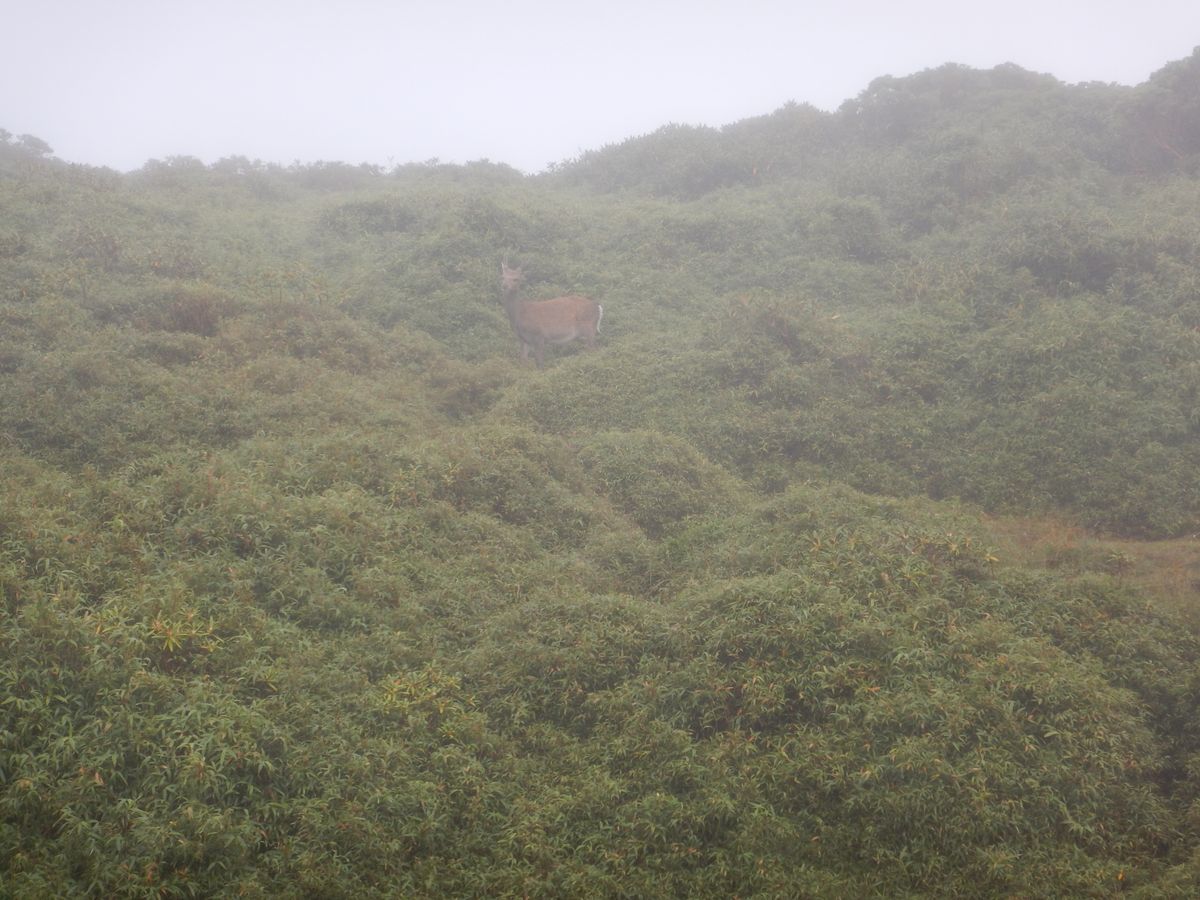 早朝から霧雨、ほぼ一日中雨の中、山を知り尽くしたガイドの池田さん(なんと、173回目の登頂!)の引率の下、往復16kmの山行も無事終えられました。滑りやすい木道や階段、川のように水が流れてしまった岩場など、的確なアドバイスがあったからこその登頂でした。池田先生、ありがとうございました!