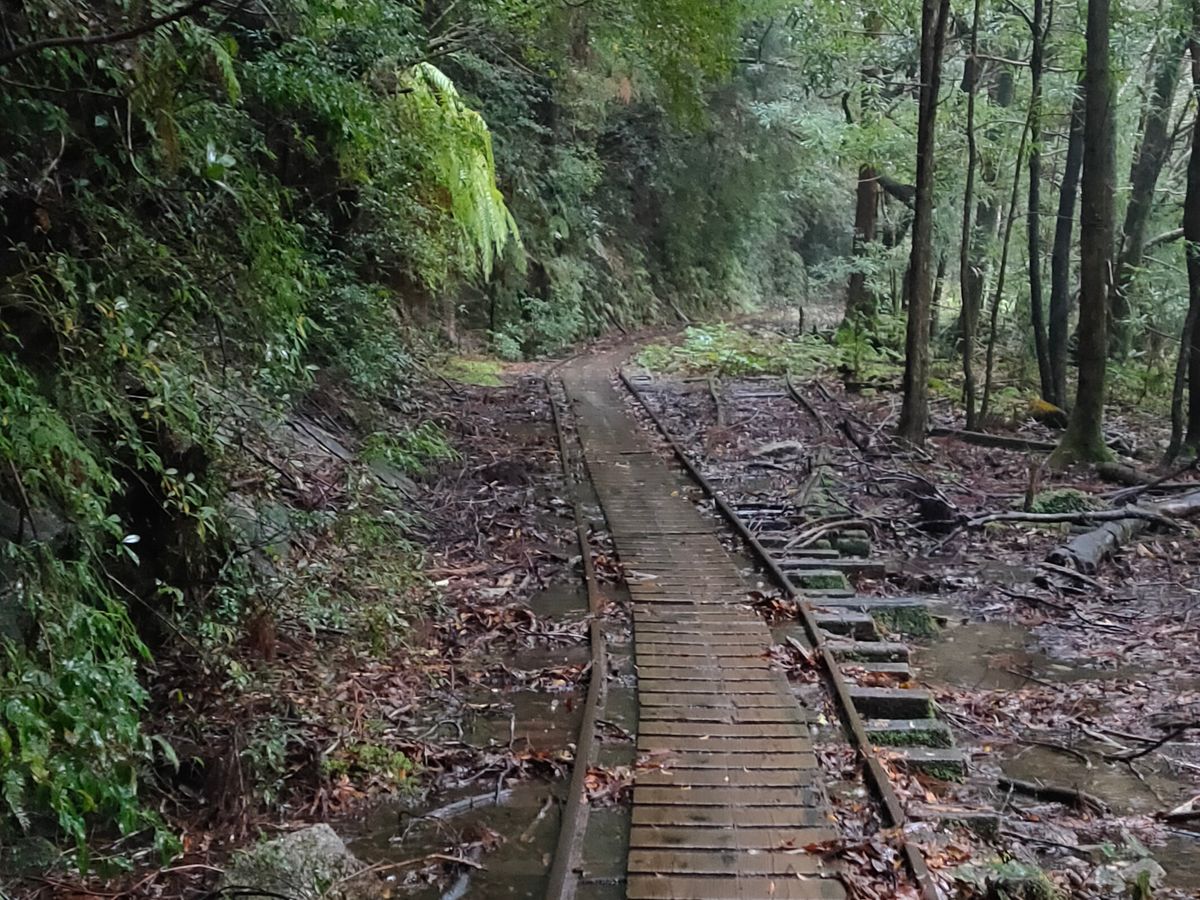 当初の天気予報は午後から回復傾向ではありましたが、山の中では天候の回復は望めず20分の待機中にトロッコ道でも落雷が確認できたため、ツアーを中止し引き返しの判断となりました。