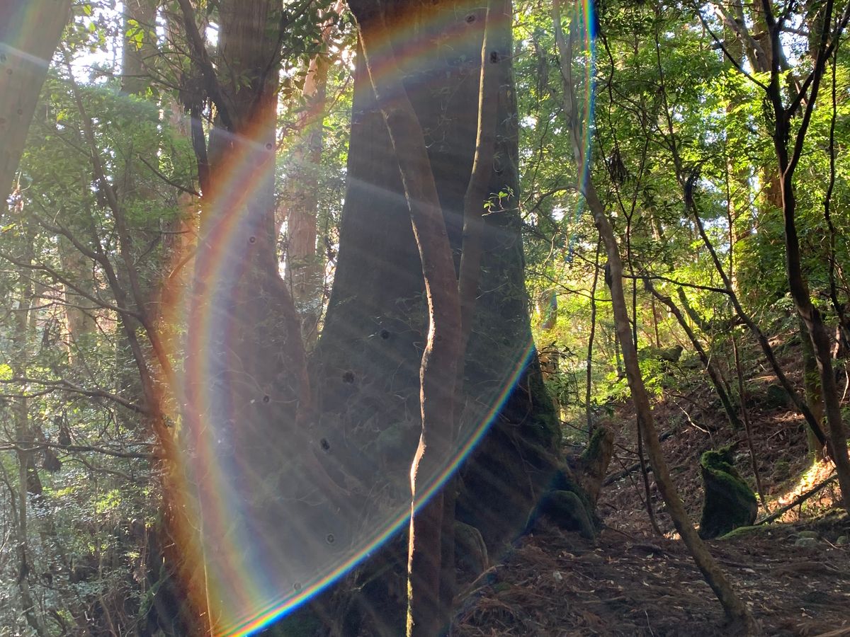 夜明け前に出発しトロッコ街道をひたすら進んで行きました。途中の橋から見た朝焼け、朝露に輝いていた苔などはガイドさんに教えてもらわなかったら気が付かなかったかもしれません。縄文杉をどうしても見たかった母は途中くじけそうになっていましたが、ガイドさんや同じグループの皆さんのおかげで頑張れたと言ってました。