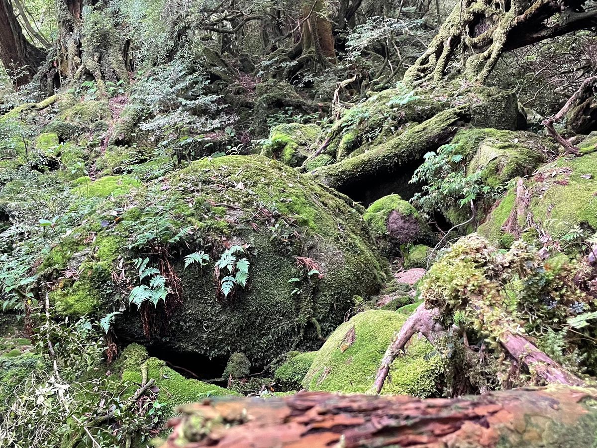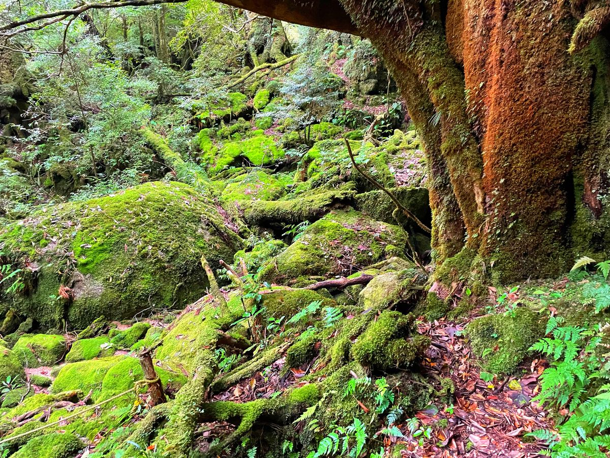 苔むす森の半日コースに参加しました。前日、縄文杉を登った後だったので、元気な娘を尻目に不安しかなかったのですが、ガイドのKさんが山登りのポイントや注意点、屋久島の森や屋久杉の特徴、植物、生き物など、途中で休憩を挟みながら説明してくださり、写真もたくさん撮っていただいて、おかげで楽しみながら歩けました。雨の屋久島には珍しく、当日は雲一つない晴れだったので、帰りの都合がなければ「太鼓岩も行ってみたかったな。」とか「次は雨の森も見てみたいな。」と全身筋肉痛ですが行ってよかった!ガイドさん頼んでよかった!と思える旅でした。