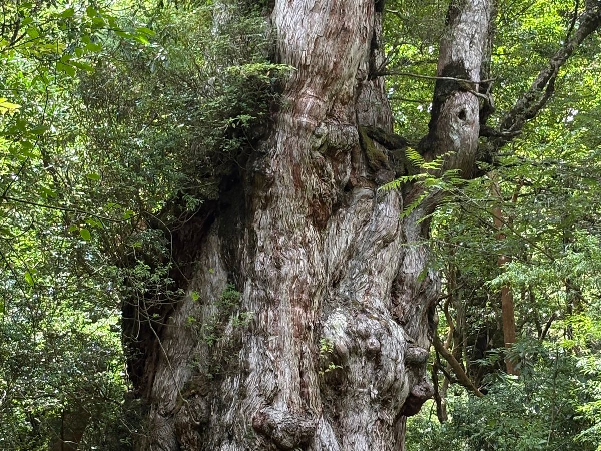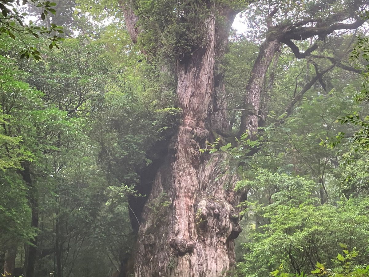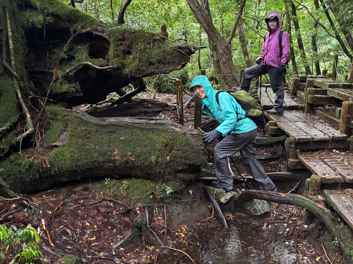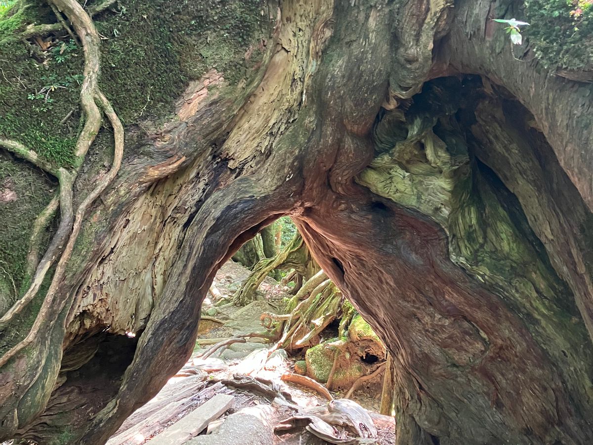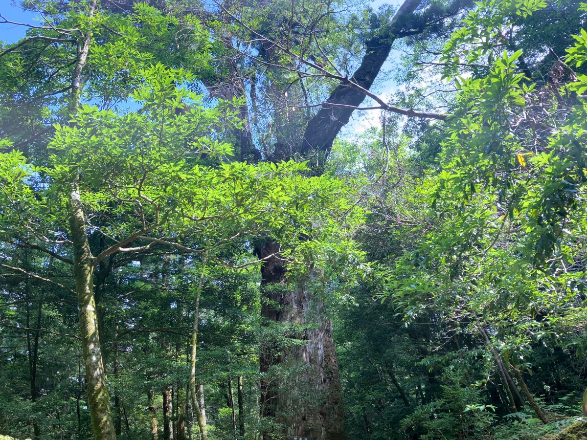 事前準備のため近くの山に登り、憧れていた縄文杉トレッキングツアーに、思い切って参加しました。当日は木々の間から青空が見えお天気に恵まれましたが蒸し暑く、登りに入った途端、左ふくらはぎがつって動けなくなりました。もう無理かもと思ったとき、ガイドさんが漢方薬をくださり、しばらく休むと奇跡のように歩けるように。でも、安心したのも束の間、今度は両足の大腿直筋がつってしまい、再び諦めかけましたが、皆さんの優しさと励ましに支えられ何とかウィルソン株のハート、大王杉、夫婦杉、夢にまで見た縄文杉に会うことが出来ました。厳しい道のりでしたが、ガイドさんの的確なサポートのおかげで怪我もなく無事に完歩。ガイドさん、そしてご一緒した皆さんのおかげで、この旅が特別なものになりました。心から感謝しています。