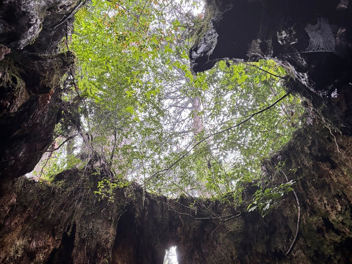 台風の影響で増水となったことを受け、苔むす森まで歩くルートが通行止め。急遽弥生杉を見るショートルートに変更になりました。ガイドさんは70台のベテランの方でとても丁寧に説明してくださいました!