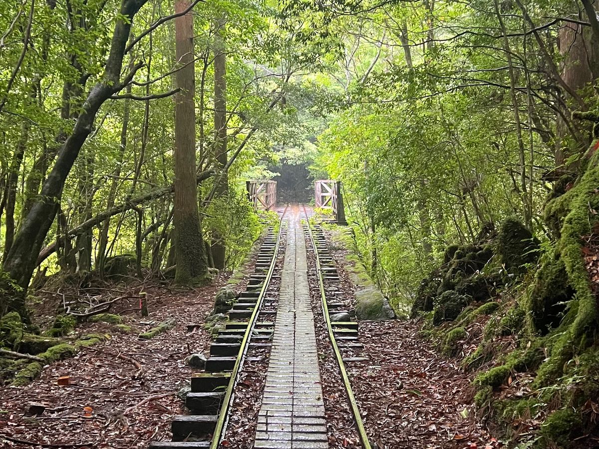 帰りのトロッコ道では、足の痛みに耐えられず、雨と雷の中、私の荷物はガイドさんが運んで下さり、途中何度も休みながら、何とか登山口まで戻ることができました。