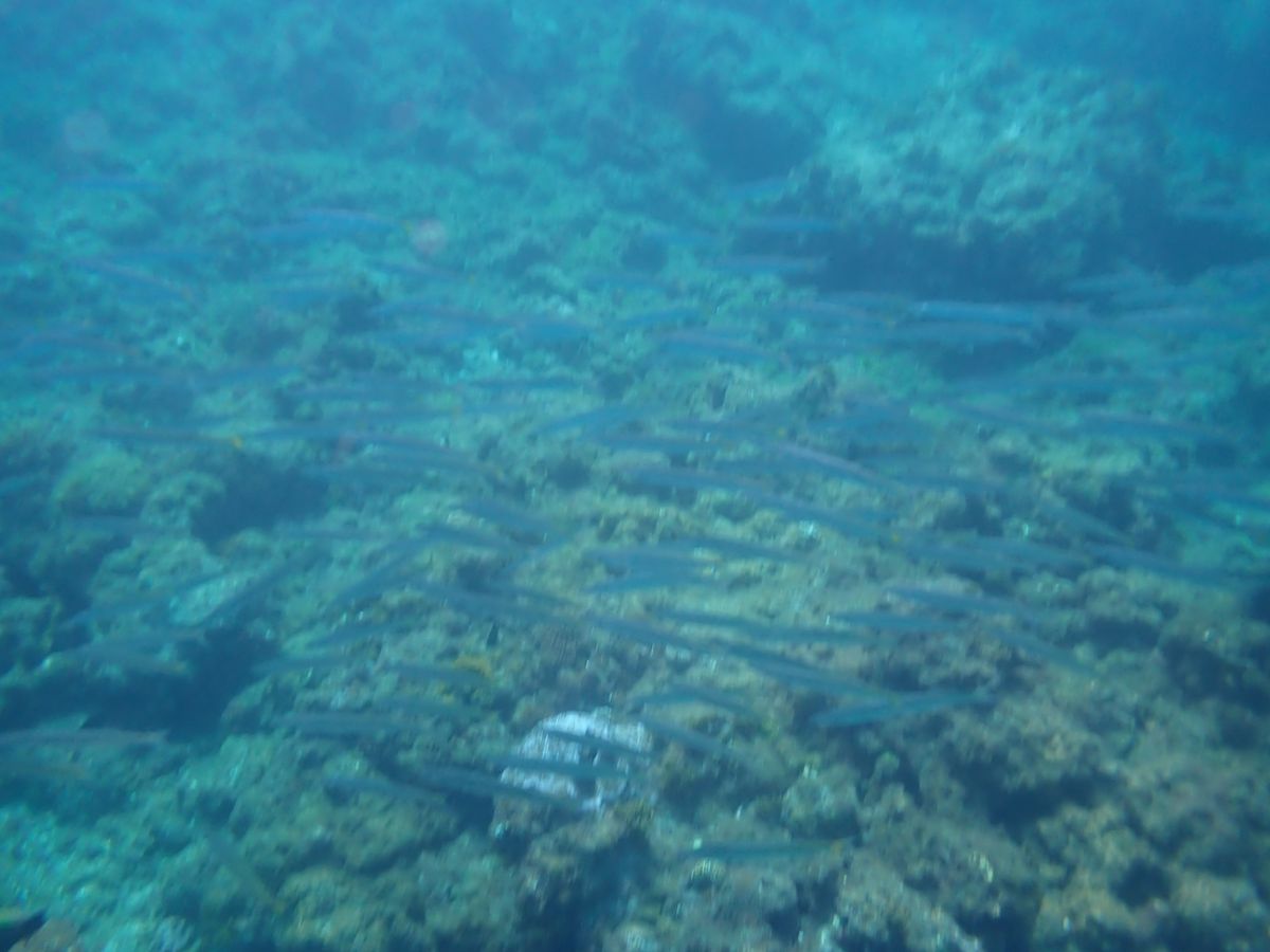 一湊まで車で移動してビーチエントリーです。風が強くて吹き飛ばされそうでしたが海は意外に穏やかでした。干潮時だったのでごろごろした石の上を結構歩きました。すぐにウミガメと出会えて何枚も写真が撮れ、呼吸をする様子も見られました。お世辞にも珊瑚がキレイとは言えませんが、ルリスズメダイ、ツノダシ、チョウチョウオ、ブダイなどたくさんの魚を見ることができました。小さいですがクマノミも4カ所で確認しました。
