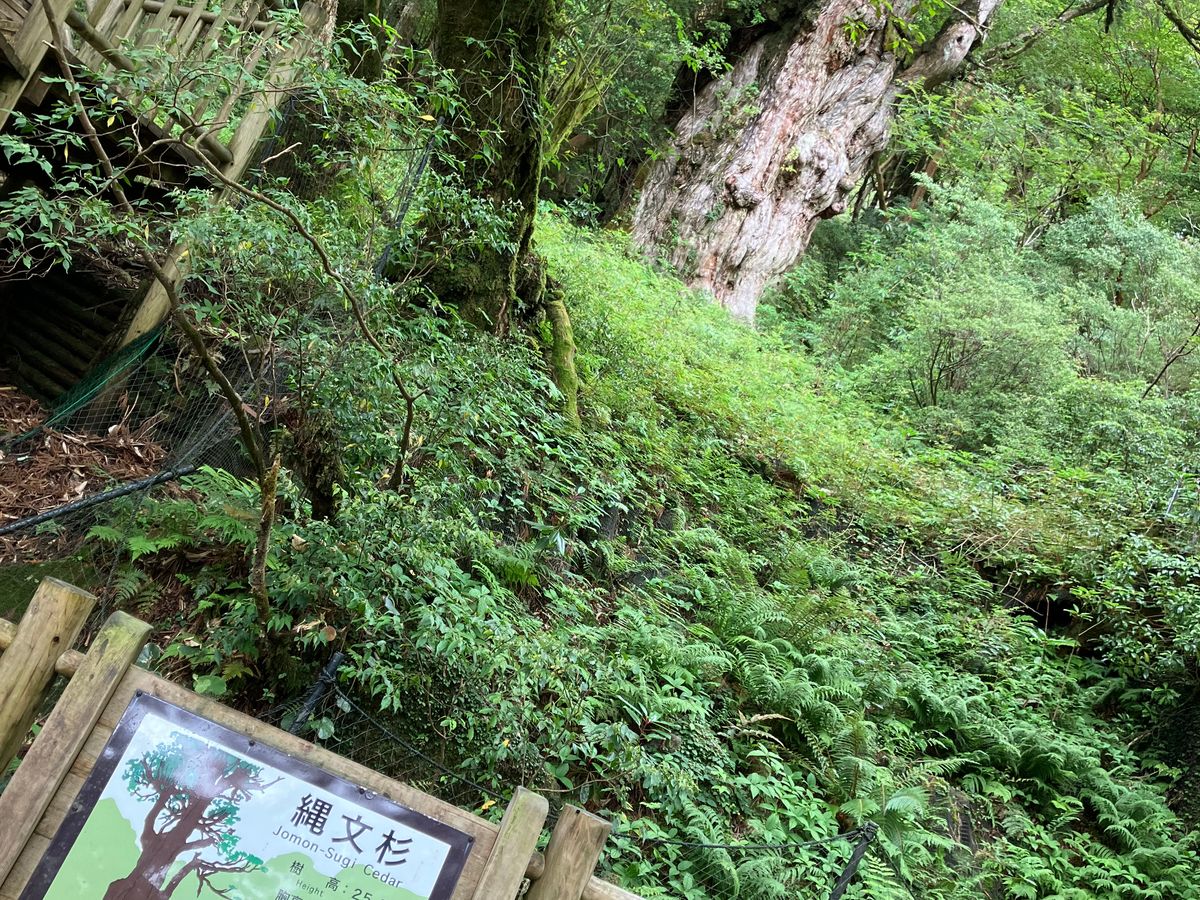 本命の縄文杉はデッキから少し遠く、サイズ感が掴みにくいのですが、説明を聞いた途端かなり大きい事に驚きます!