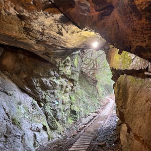 当初の天気予報は午後から回復傾向ではありましたが、山の中では天候の回復は望めず20分の待機中にトロッコ道でも落雷が確認できたため、ツアーを中止し引き返しの判断となりました。