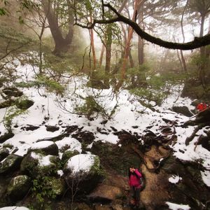登山者も少なく貸切状態の登山道、雪と霧の山中も神秘的なコンディションでしたね。