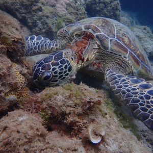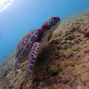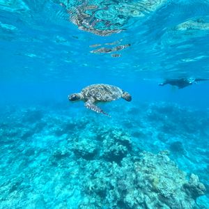 上手くはないですが、泳ぐのは大好きです。海がめと一緒に泳げて感激‼アリエルになった気分でした。ありがとうございました。