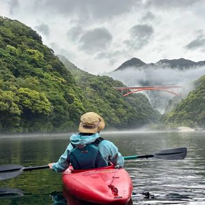 頑張った登山の翌日は、安房川のゆっくりとした時間の流れの中で水面を漂うカヤックは最適解だと思います。