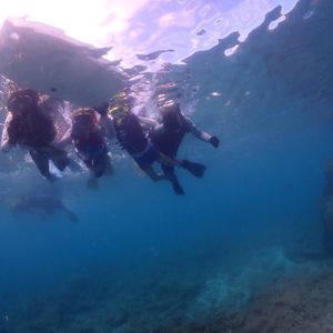 家族4人(小学生男子6年と3年)で参加しました。2家族の参加でガイドさんが一家族ずつしっかりと安全を見ながら案内してくださいます。ゴーグルを1人ずつ渡す時から楽しくコミュニケーションをとってくださり、子ども達もリラックスして自然に海に入る事が出来ました。終始ガイドさんのトークが面白く、そしてウミガメも見つける事ができ、虹も見えて大満足でした!
