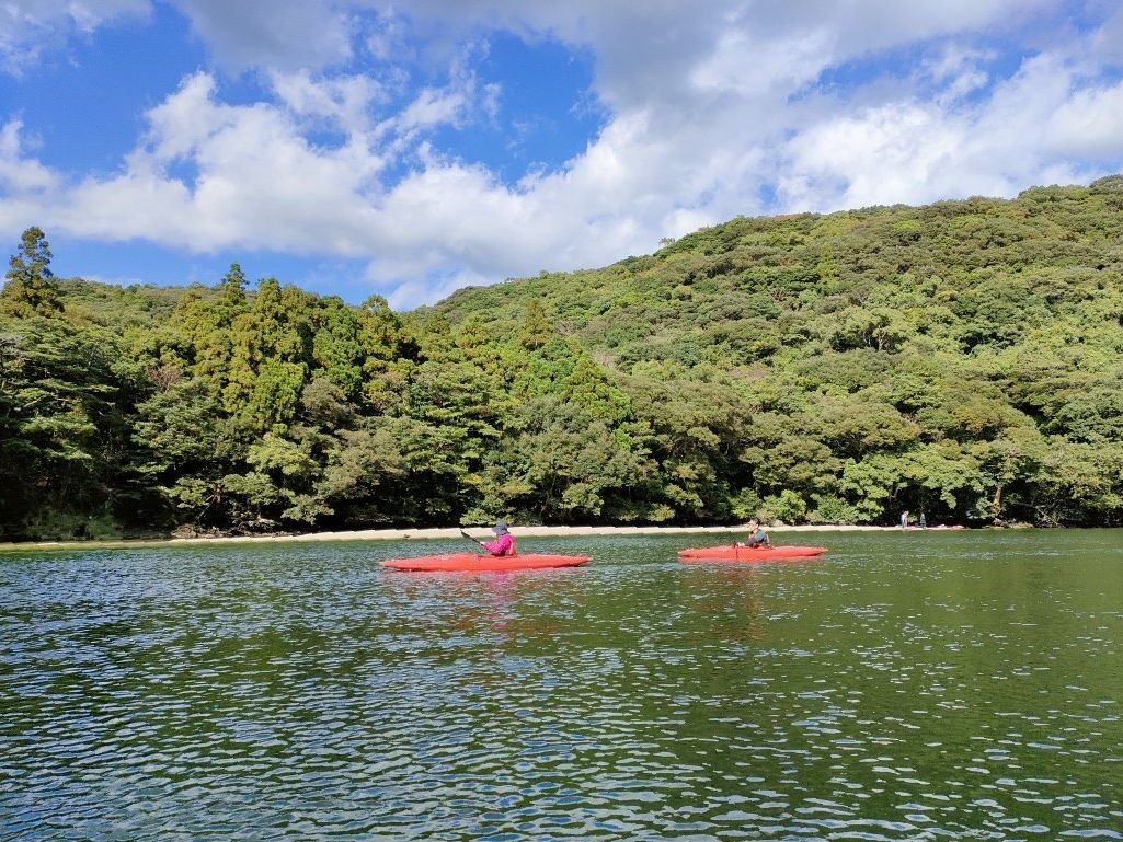 母と共に初めてのカヤックで、最初は不安定で落ちないかドキドキでしたが、ゆりやさんが丁寧にコツを教えてくださり、気づいたら慣れて楽しんでいました♪♪