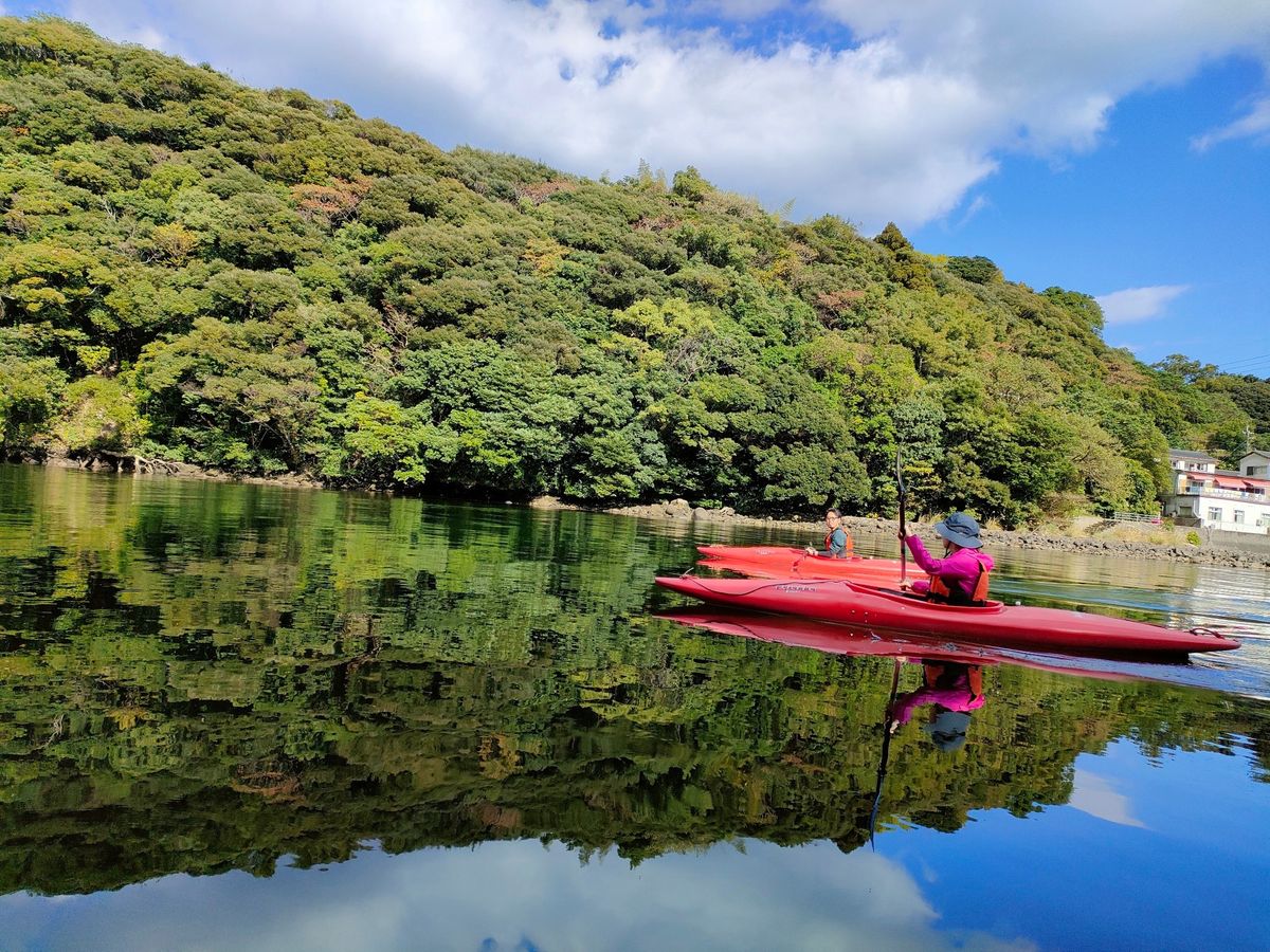 冬だったので寒さを心配していましたが、足下はマリンシューズと靴下をお借りでき、また、漕いでいるうちにすぐに体もポカポカ温まり、心配無用でした。夏は他のカヤックツアーの方々で混み合うようですが、今回は私たちしかいなかったので、安房川の大自然を悠々と満喫できました。冬もオススメです!