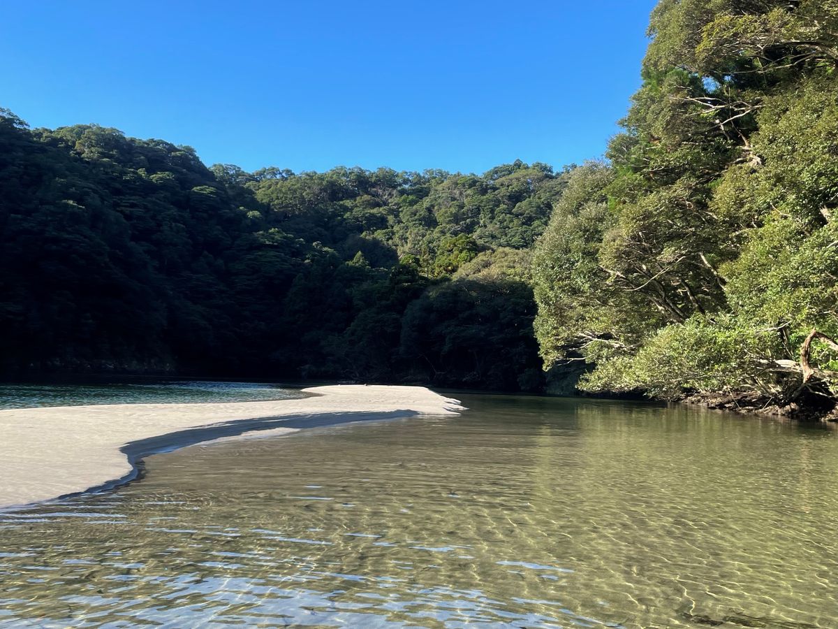 風がなく波が立たない日だったため、屋久島の美しい森が水面に映えて本当に綺麗でした。