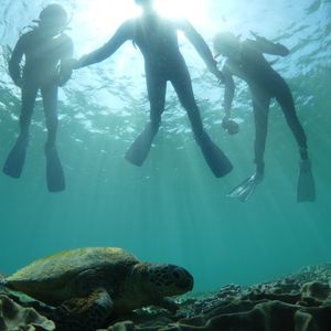 シュノーケリングでは沢山の綺麗な魚やウミガメが海面に上がる瞬間も見れました。
