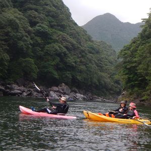 安房川の澄んた水にゆっくりカヤックして、周りの森景色堪能できて、素晴らしい体験でした。途中、屋久猿発見!猿家族と一緒に写真もできました