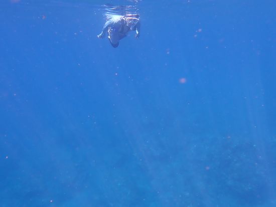 しかも結構沖合まで行っているのに水深3〜5mほどで、板に捕まってずっと眺めていました。