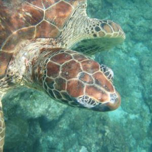 ゲストも私達もウミガメにいたずらをしないから、安心して泳ぎ回っているんですよ!