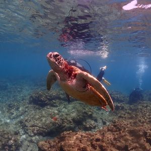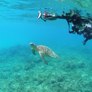 初めて海ガメを生で見ることができました!陸から近いところだったのですが一度だけでなく四、五回見ることができて驚きました。天候の影響で水が濁っていたようで、あまりハッキリと見えなかったのが残念でしたが、とても良い思い出になりました。少し寒かったので9月は避けた方がいいかもしれません笑