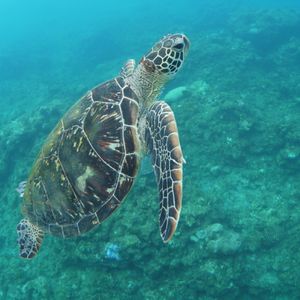 珍しいアオウミガメ2匹と出会い、一緒に泳ぐことが出来ました!!