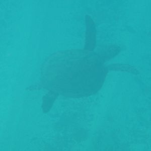 足の下をウミガメが泳いでいるのを見て、おもわずわっと声をあげたら、ぴゅーっと逃げて行ってしまいました。