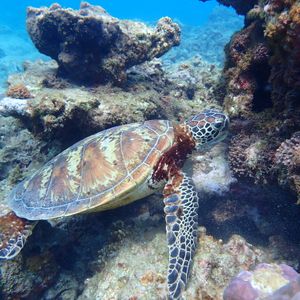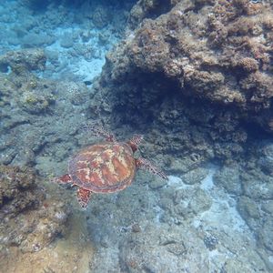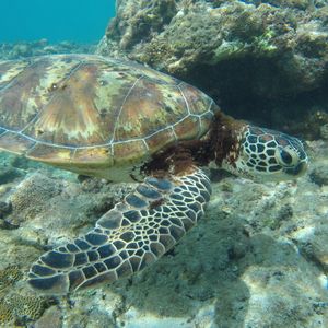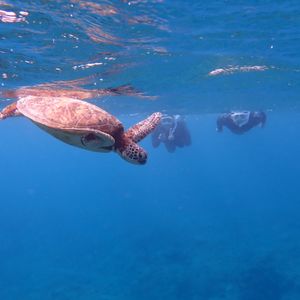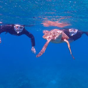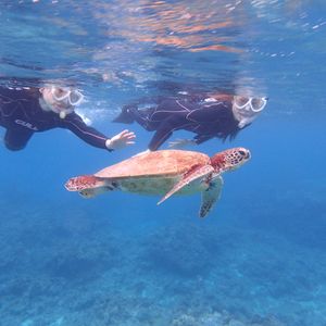 (小4娘感想)亀とたくさん泳げて写真も撮れました!海は思ったより深くいろいろな生き物が見られて感動しました。(母感想)娘がほとんど泳げないので心配しましたが、シュノーケリングのおかげで問題なく楽しめました。以前に自己流でシュノーケリングした時は溺れそうになりましたが、今回は丁寧な説明のおかげで楽に泳げました。とても良い思い出になりました。