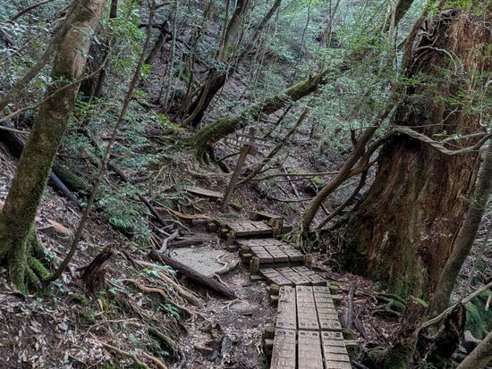 小4の子連れ、かつ、前日に縄文杉に登ったばかりで、きっと身体が使い物にならないだろうと思い、