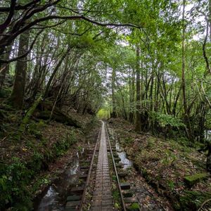 トロッコ道を進みながら集落跡や苔、植物の話を聞きながら話をしながら歩きます。