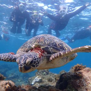 ガイドの原崎さんのサービス精神がすごくて、トークも楽しい、シュノーケリングも楽しい、あっという間の2時間でした。私たちの笑顔に誘われてか、2⁻3日現れなかったウミガメも顔を出しくれました。写真もいっぱい撮ってくださって大感謝です。