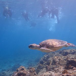 海に入るなり念願の海亀に逢えました。しかも、述べ3匹、大きな伊勢海老や海蛇、様々な魚達にも遭遇しました。初めてのシュノーケリングは、最高でした。空は、快晴、前日の縄文杉トレッキングの疲れも吹き飛ぶくらいHAPPYな体験でした。美味しいお昼のお店にも案内していただき大感謝です。ありがとうございました^_^