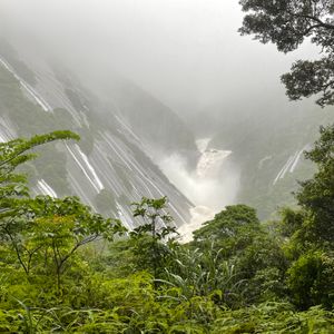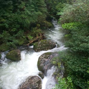 大雨の中ガイドさんの説明を聞きながら観光しました。道が川のようでしたが木々は美しくあちこち滝のように雨が流れていました。ダイナミックな感じでした。