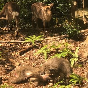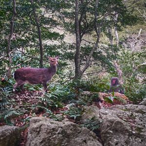 西部林道では、親子でたわむれるヤクザルがあちこちにいて、ヤクジカにも出会うことができました。