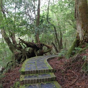 ヤクスギランドでは50分の観光時間があり、30分コースか50分コースかを選んで観光できる。いずれのコースも整備された道のためスニーカーで問題ない。