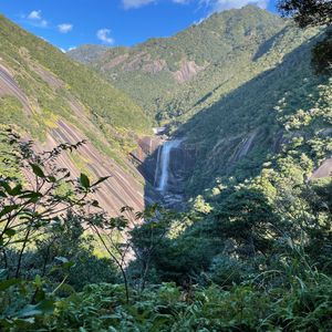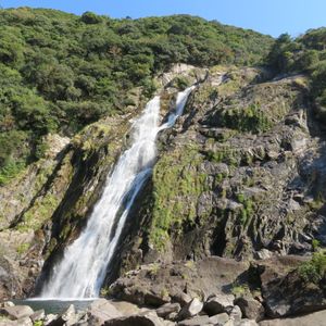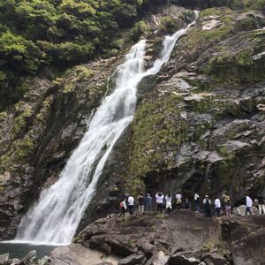 ツアー出発前は、突然の雨でしたが、観光スタート(千尋滝)時には晴天になり、楽しむことができました。
