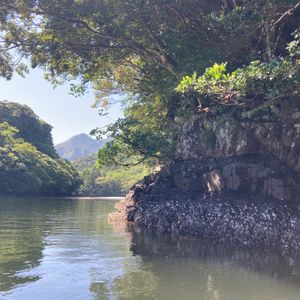 強風で2時間弱飛行機が遅延、なんとか着いた屋久島空港では雨の中なんとかバスで宿に辿り着いた翌日、朝から1日お世話になりました。初日の疲弊とは裏腹に、白谷雲水峡に向かう車の中で屋久島のことを聞き、その予備知識と共にスタートしたトレッキングはとても素晴らしかったです!6, 10歳の子ども達にとっては程よいチャレンジングさの道のりで、地形、植生共に未経験レベルの凄さに家族一同感嘆させられっぱなしでした。カヤックでは引潮で大変かもと聞きながらもちょうど良い負荷で、引潮ならではの砂浜に上陸できたり、さかなや蟹を追いかけてとても充実した時間が過ごせました。お味噌汁やココアの差し入れも嬉しかったです。ありがとうございました!