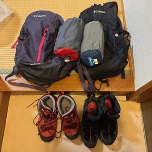 靴は試着でき、納得できるものを選べます。リュックや雨具は色が豊富で好きなものを選べました。